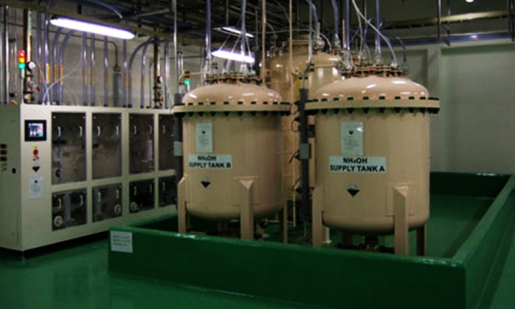 半導体、FPD(フラットパネルディスプレイ)、太陽電池などの製造時に、洗浄、エッチング、ストリッピング、フォトリソグラフィなどの工程で高純度の化学品が必要とされることがよくあります。この装置は高純度の化学品を製造装置に安全に供給することができます。通常、化学品は化学品メーカーによって化学品容器(200L〜20m3)で製造工場に輸送されます。ポンプや窒素ガスを使用して化学品を容器から送り出し、直接または貯蔵タンクを経由して粒子混入を除去し、最後に輸送パイプで製造装置に供給します。